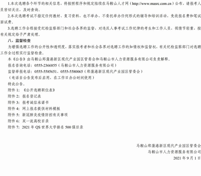 附件8:馬鞍山鄭蒲港新區(qū)現(xiàn)代產(chǎn)業(yè)園區(qū)管委會(huì)(法定機(jī)構(gòu))公開選聘專業(yè)人才公告